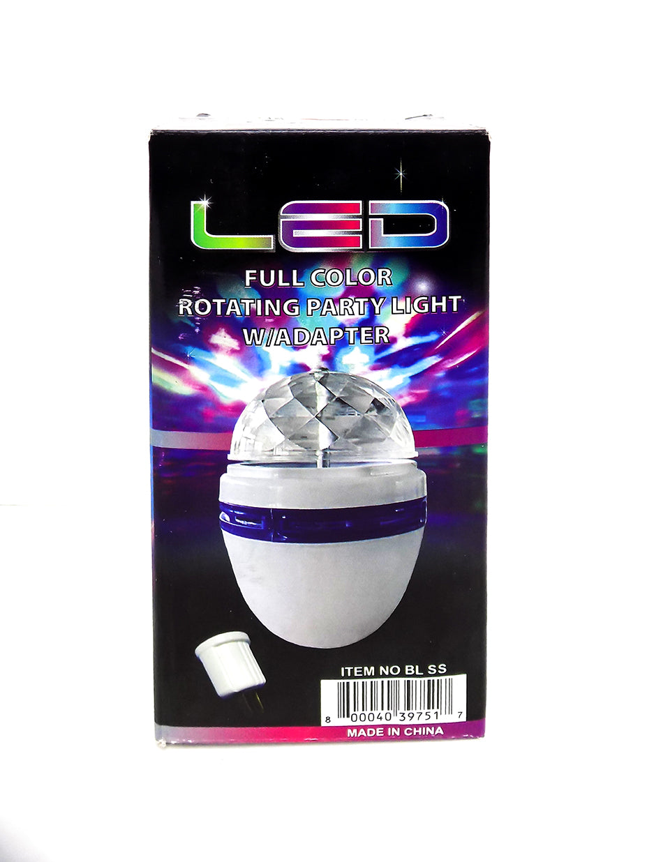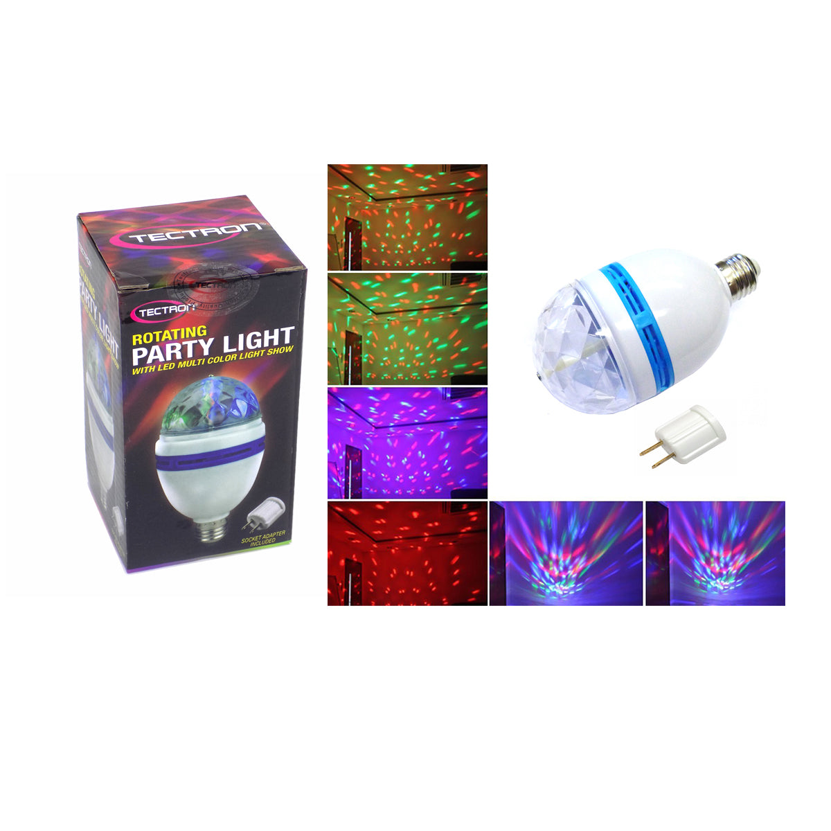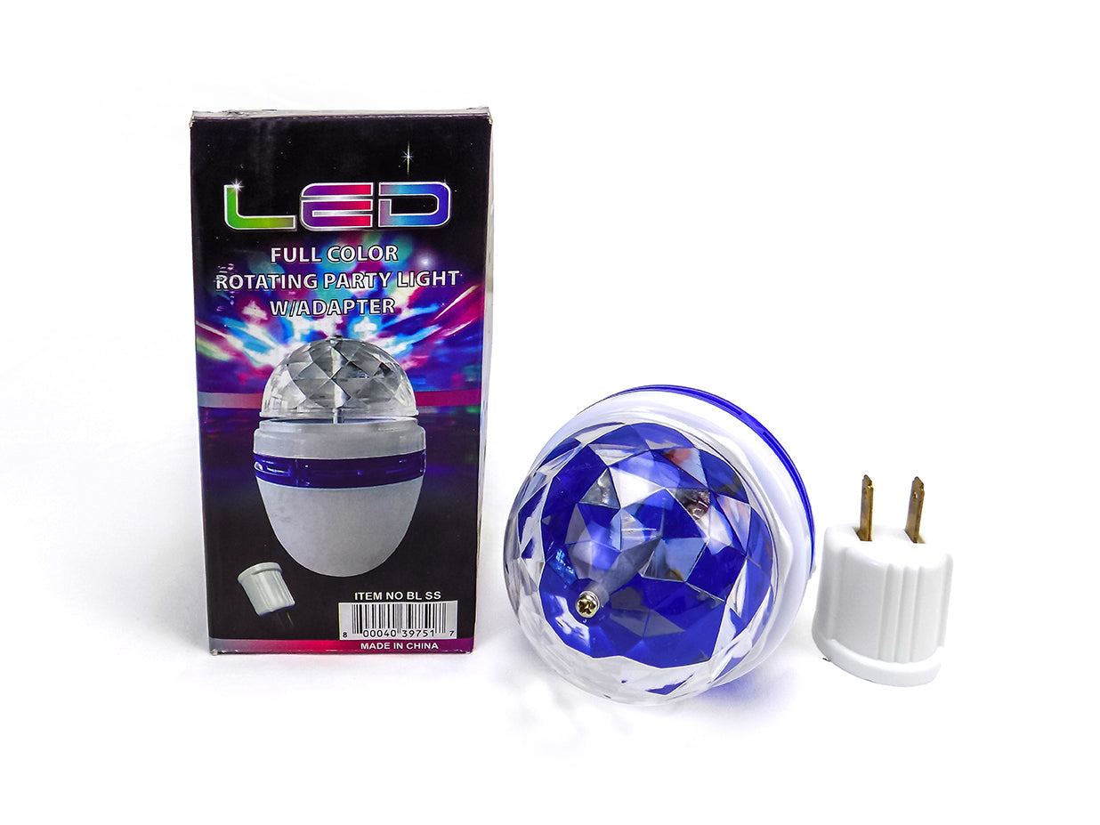Easy to install. Just plug and play.Three color strobe effects: red, blue and greenCan operate with 85-260VLong life up to 8000 hoursWith bulb socketRotating light projects colors on the wall & ceilingMake any room a party room