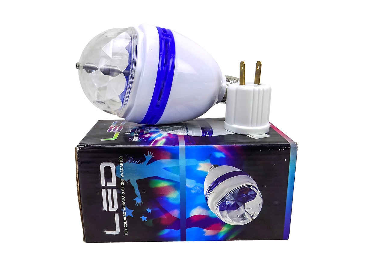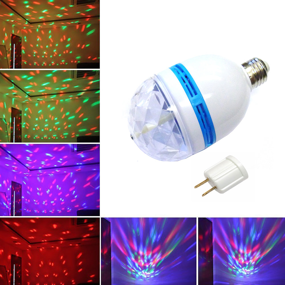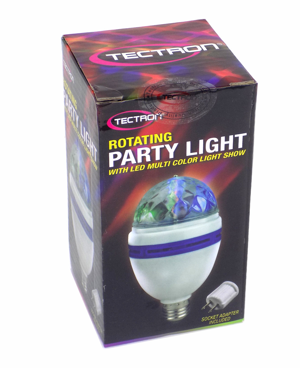 Easy to install. Just plug and play.Three color strobe effects: red, blue and greenCan operate with 85-260VLong life up to 8000 hoursWith bulb socketRotating light projects colors on the wall & ceilingMake any room a party room