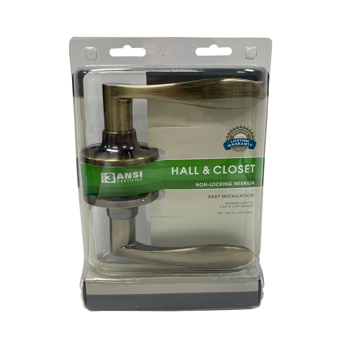 Features:Victoria Lever Passage Antique BrassFits doors 1-3/8" to 1-3/4" thickAdjustable backset for either 2-3/8" to 2-3/4"Works with right and left swing doors