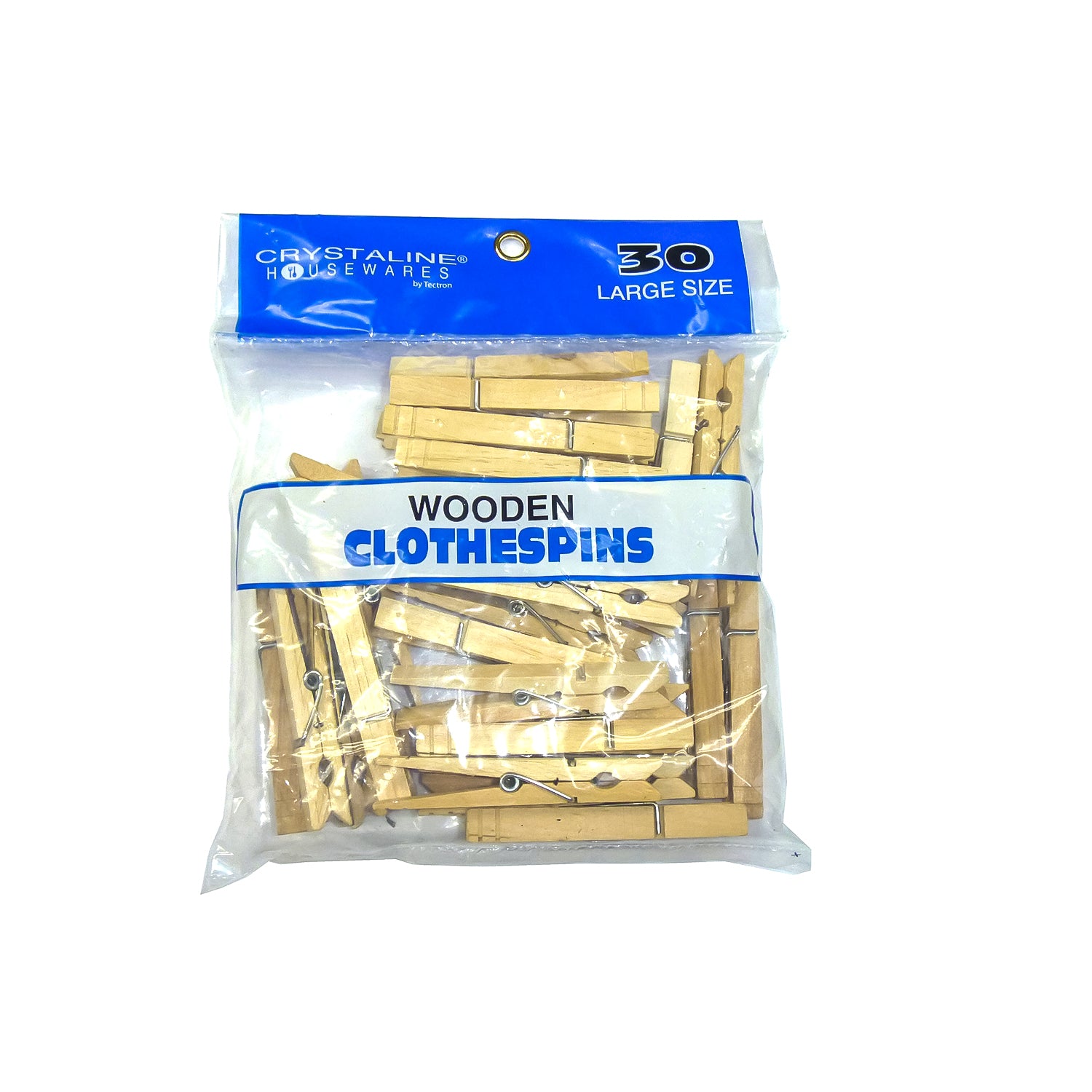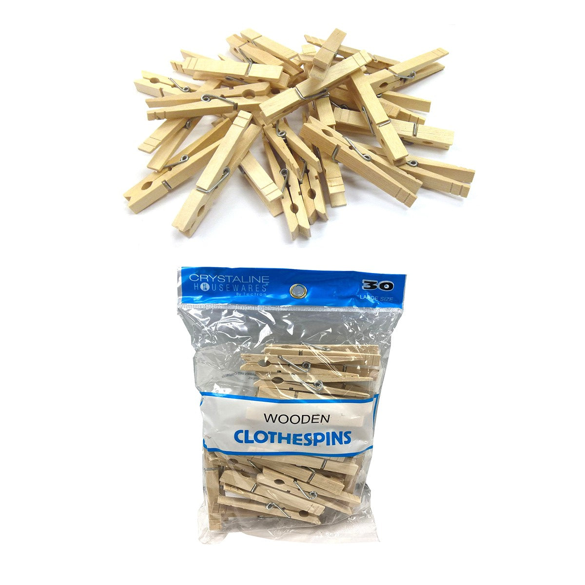 Bag of 30 wood clothespins with spring. The hardwood construction and heavy-duty spring will last through your most challenging laundry days