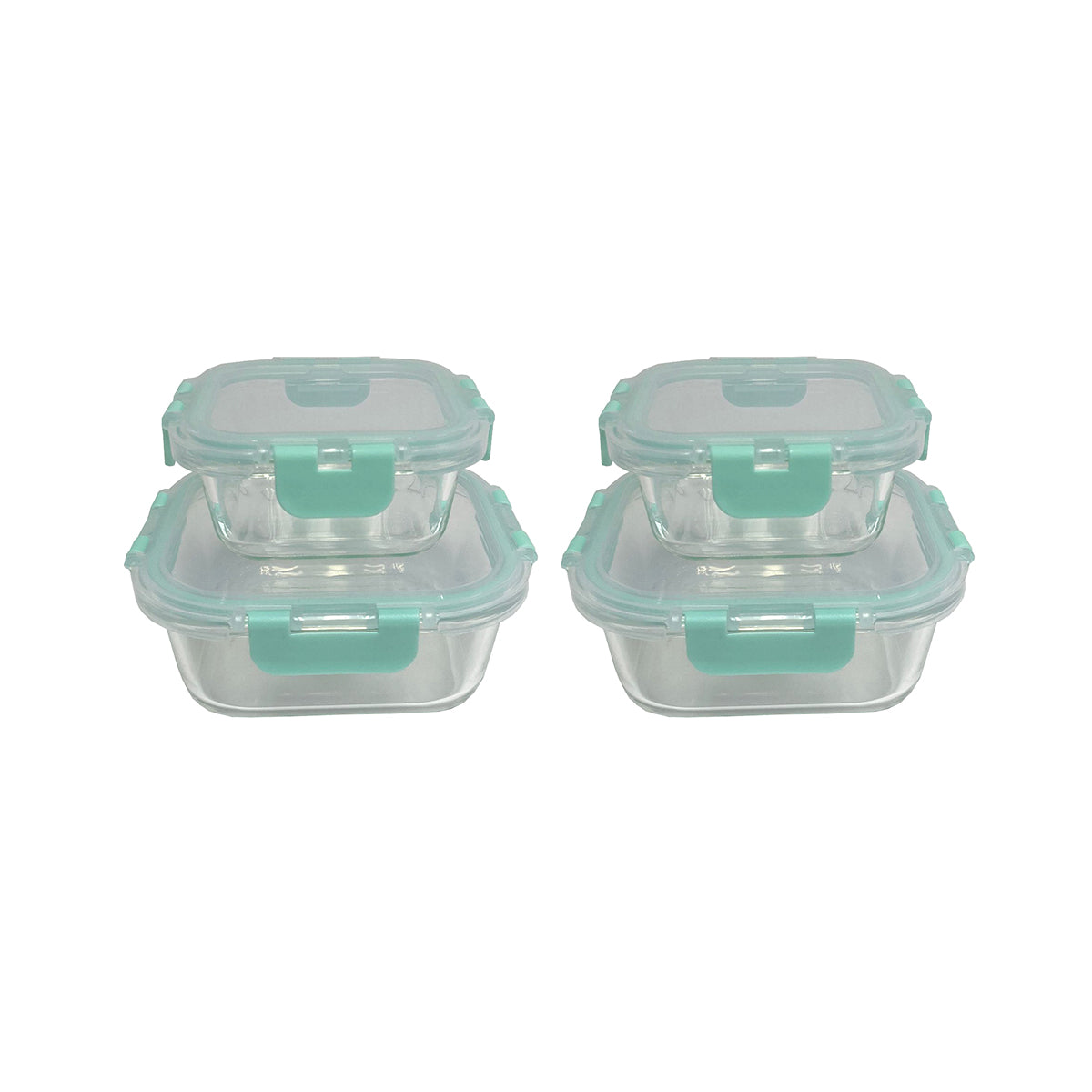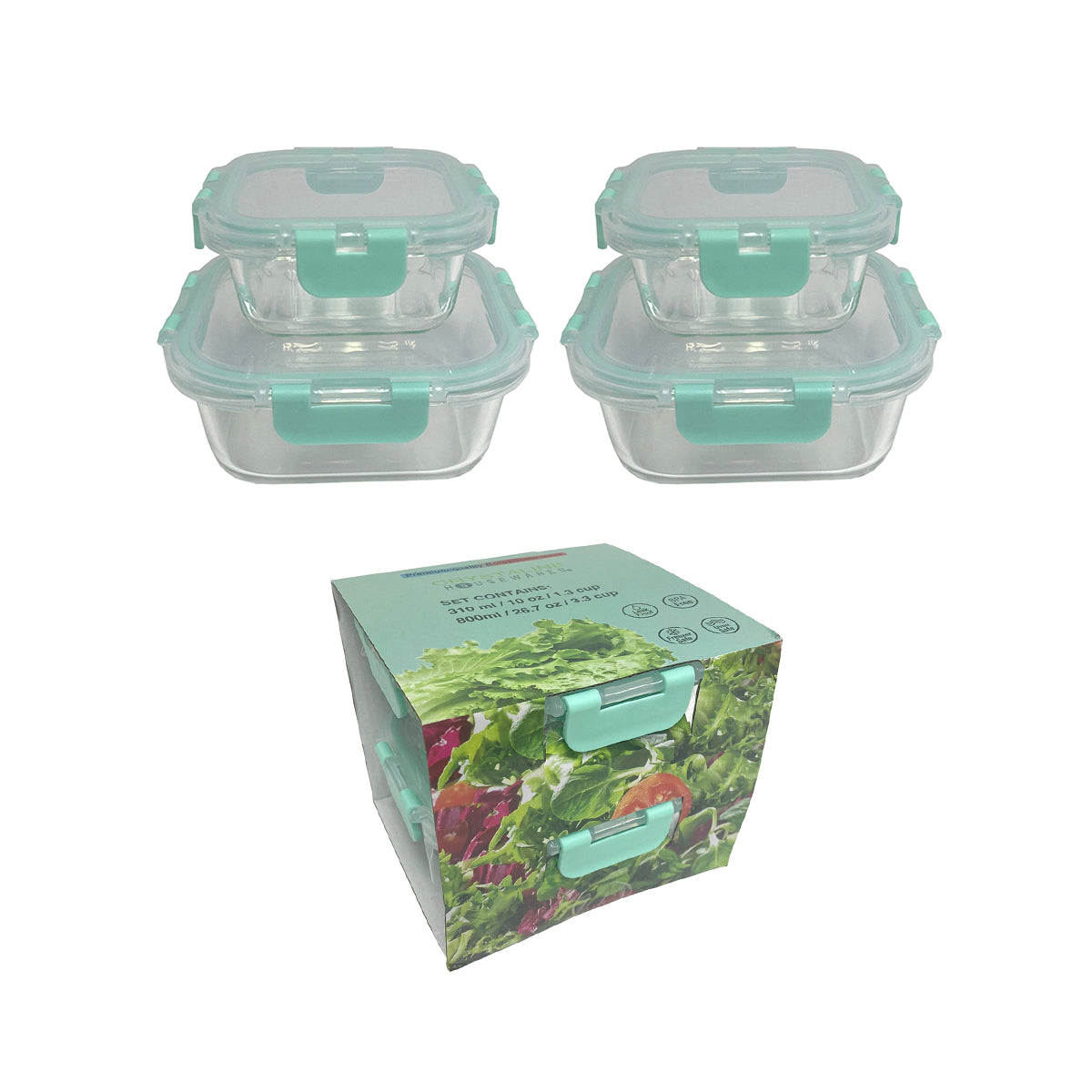 4 Pk Square Container 2X 310Ml + 2X 800Ml Glass W/ Hinged Pp Lid - FC310SQ