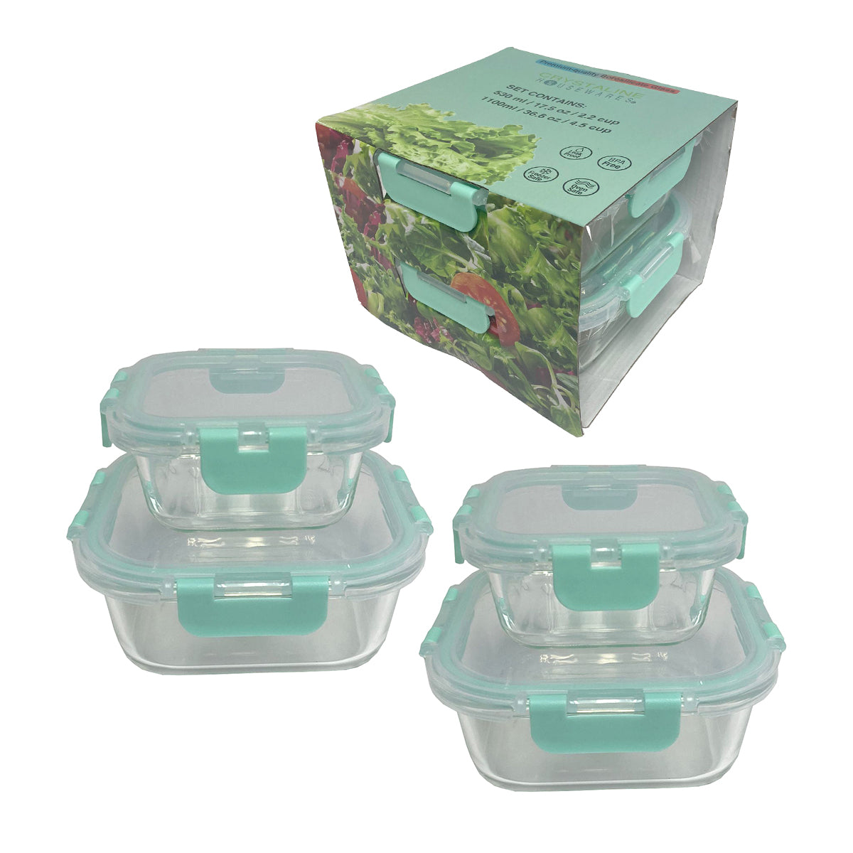 4 Pk Square Container 2X 530Ml + 2X 1100Ml, Glass W/ Hinged Pp Lid - FC530SQ