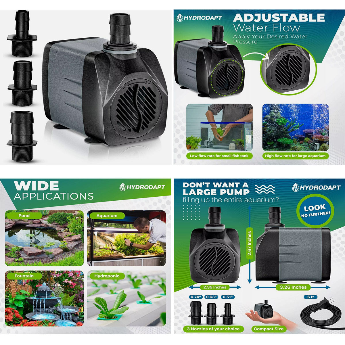 Microsealed motor, stronger and quieter: maximum adjustable flow = pump of 550 GPH. Adjust the flow rate to your animal, plant or height needs, making it ideal as a garden water pump, fountain water pump or fish tank motor pump.
