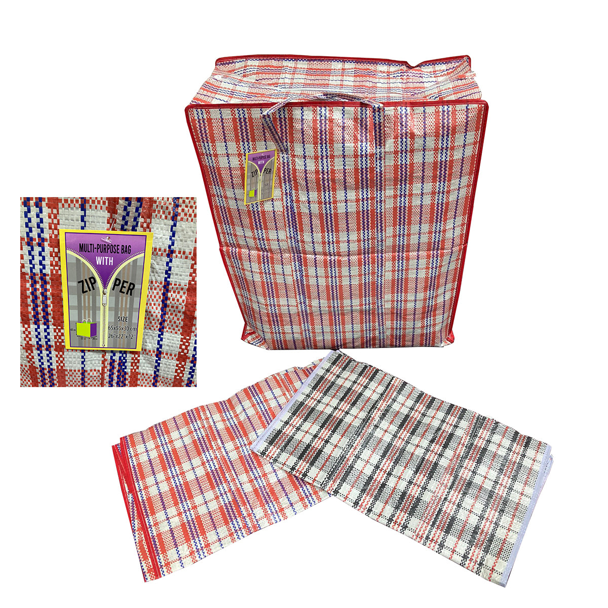 Features:Size: 26 x 22 x 12 inchesAssorted color ( Black & Red checkered)With ZipperReusableSturdy portable strapsWater resistantFoldableEasy storage